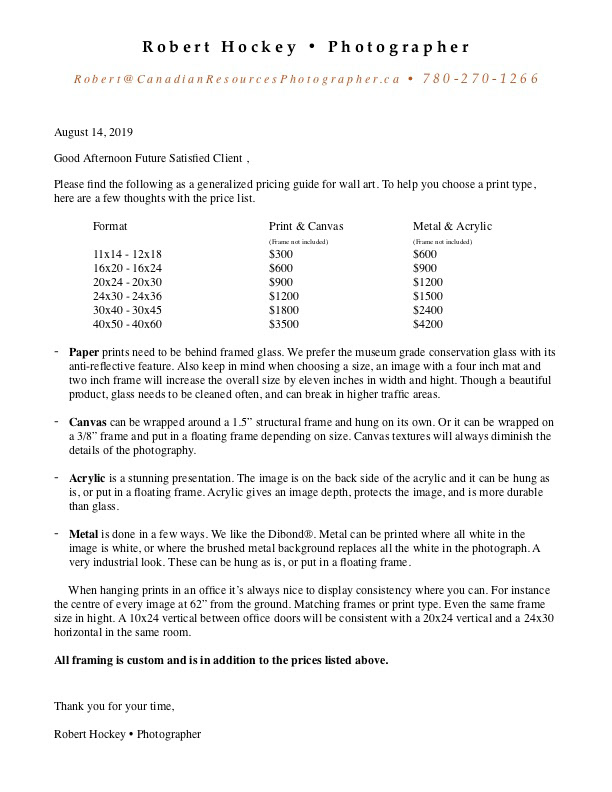 Wall Art/Prints Pricing Guid